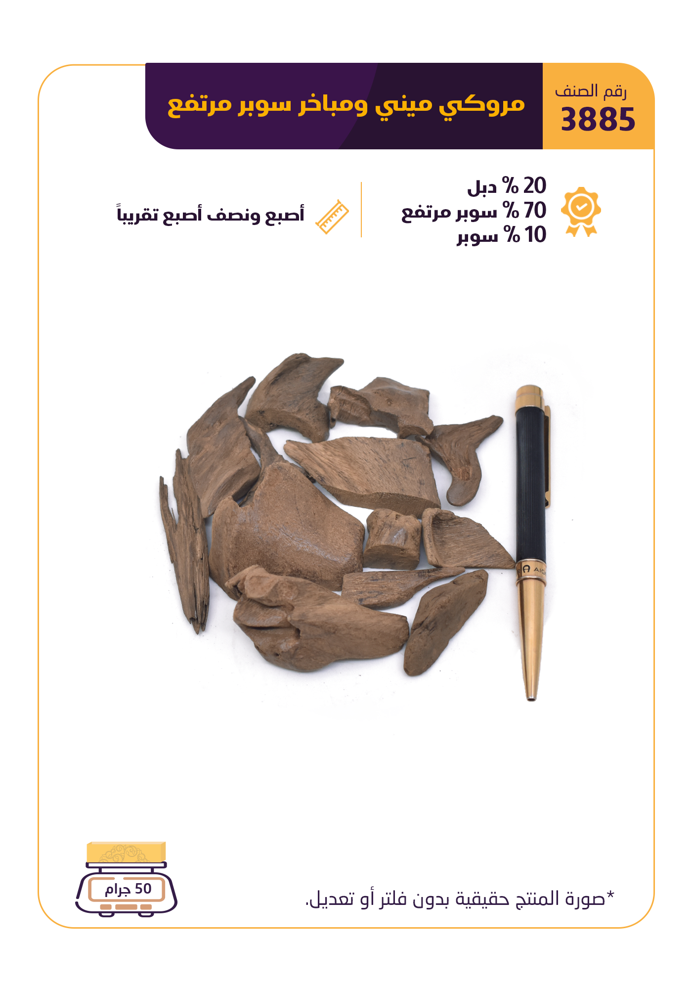 من غابات إندونيسيا، حيث ينمو العود في بيئة طبيعية هادئة، يأتي العود المروكي، المنتقى بعناية من أخشاب معروفة بثباتها ونقاوتها. رائحته بخورية بطابع حالي وخشبي ناعم، تنبعث منها نغمة هادئة تعبّر عن فخامة لا تُصطنع، وتملأ المكان برائحة طبيعية تليق بالمجالس والأوقات اليومية. عود مروكي يتميز بثبات الرائحة وهدوئها، ما يجعله مناسبًا لمن يفضل البخور الراقي والاستخدام المتكرر دون أن يفقد حس الفخامة